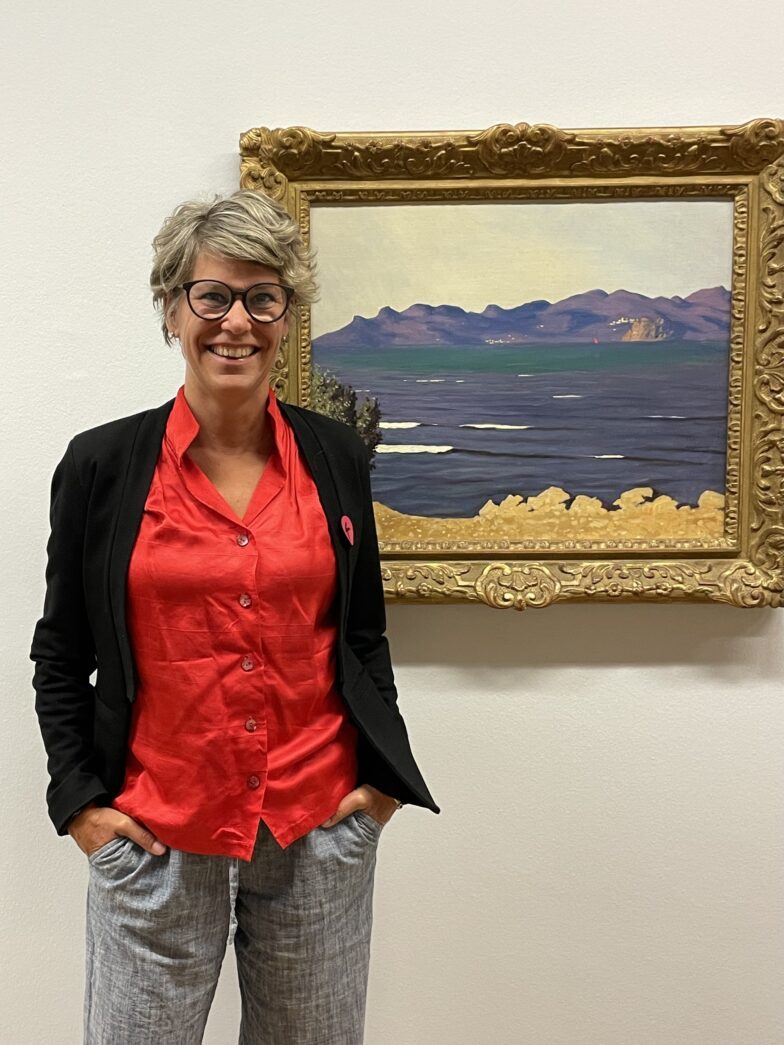 Barbara Günthard-Maier vor dem Werk L’Estérel et la baie de Cannes (1925) von Félix Vallotton in der Ausstellung Illusions perdues im Museum Winterthur | Reinhart am Stadtgarten.