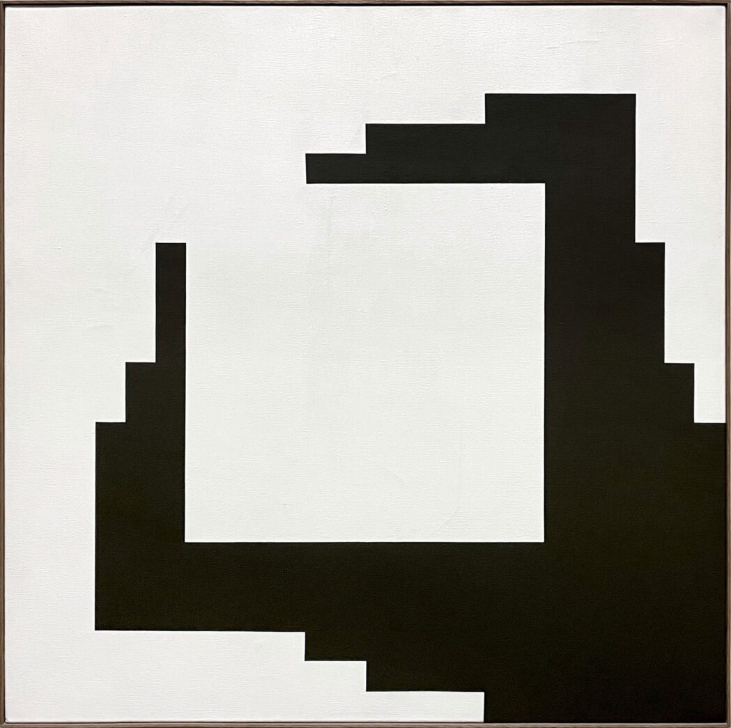 Jedesmal, wenn ich im Kunst Museum Winterthur | Beim Stadthaus vom Altbau zum Neubau hinübergehe, bleibe ich im engen Durchgang beim Bild von Verena Loewensberg kurz stehen – und staune über die einfache, konstruktive Komposition in Schwarzweiss: Das zentrale weisse, imaginäre Quadrat wird von schwarzen, roboterartigen Fingern fast symmetrisch umklammert … – für mich eine sehr kraftvolle Komposition. Als Grafiker begleitet mich diese Liebe zur konkreten und konstruktiven Kunst schon lange.