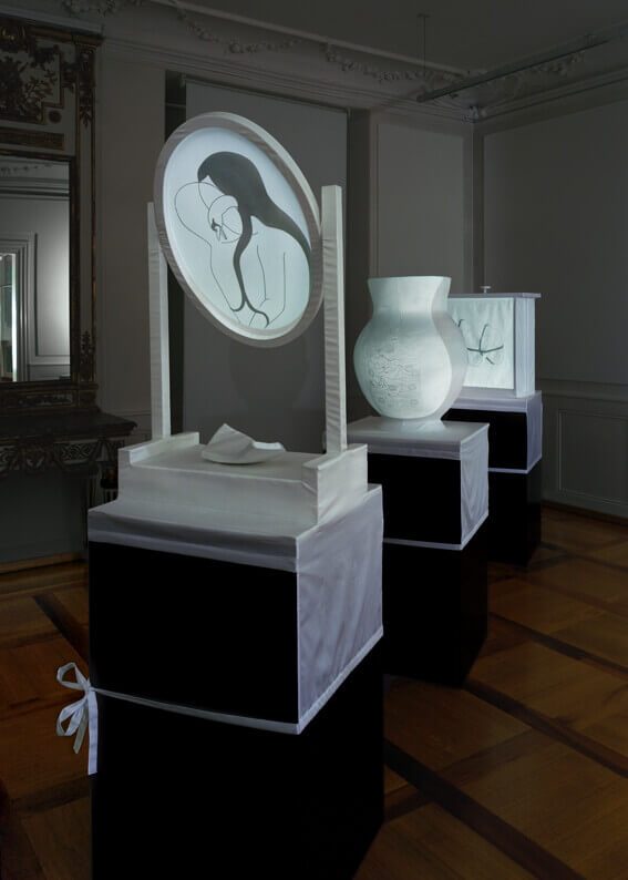 150 digitale Zeichnungen, auf drei stoffbezogene Körper projiziert, verwandeln den Ausstellungsraum in einen magischen Ort. Raumskulptur und Zeichnungskabinett in einem, entwickelt sich in der Überblendung der einzelnen Zeichnungen eine filmartige Sequenz. In diesem frühen Werk manifestieren sich wesentliche Gestaltungselemente von Netzhammers Schaffen. Ausgehend von einem im Grunde zeichnerischen Ansatz entwickelt der Künstler komplexe raumgreifende Installationen mit verräumlichten