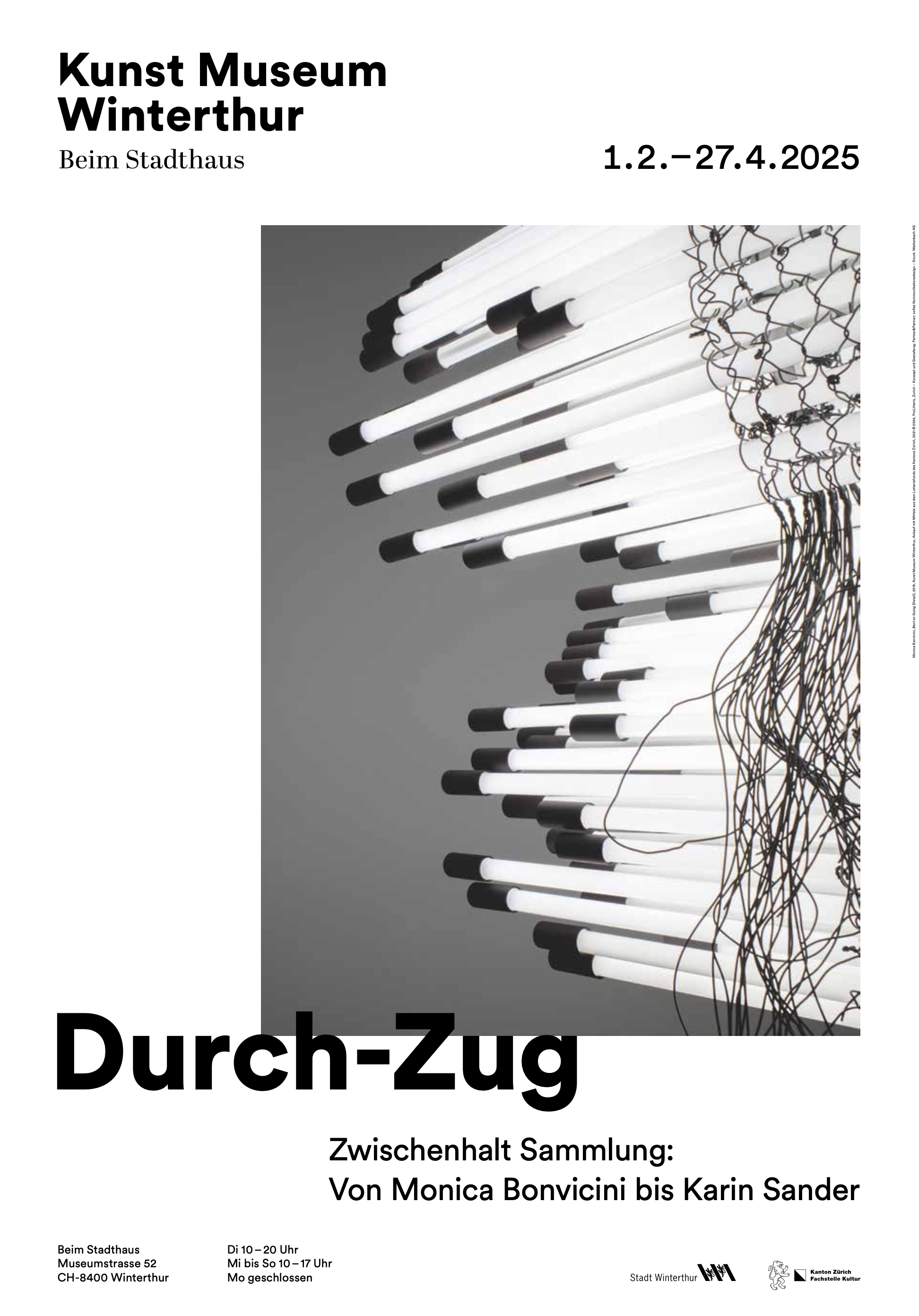 Plakat zur Ausstellung Durch-Zug – Zwischenhalt Sammlung: Von Monica Bonvicini bis Karin Sander.